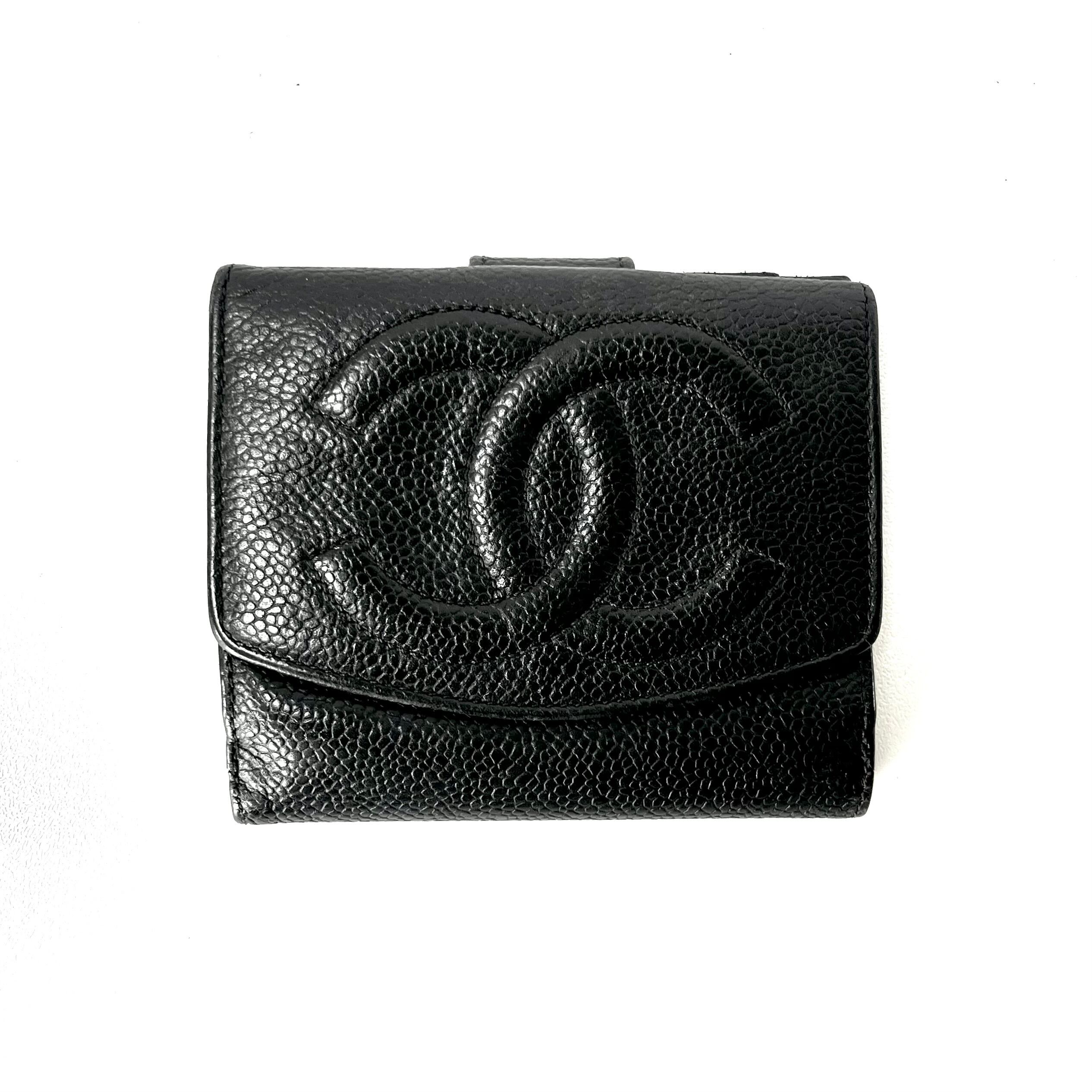 【CHANEL/シャネル】キャビアスキン CC 型押しココマーク Wホック ブラック 二つ折り財布